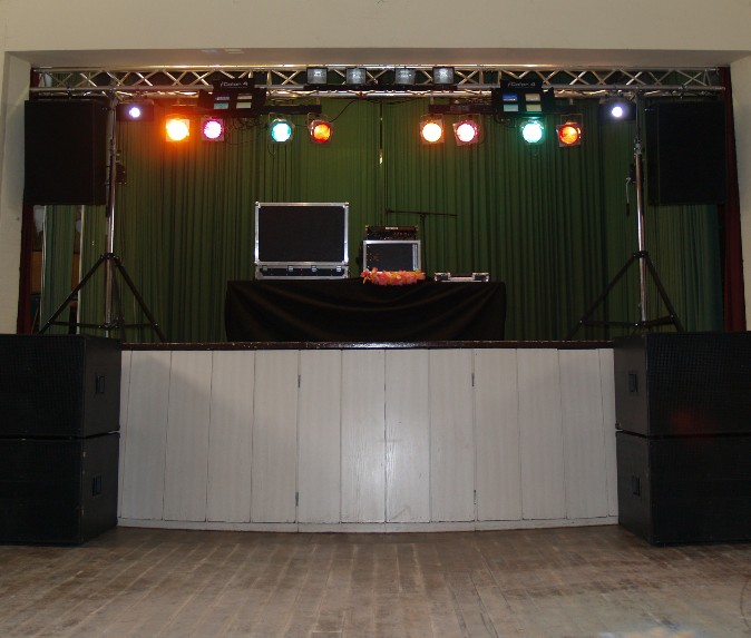 Die Musikanlage XL ist für Feiern bis ca. 200 Personen gedacht. Bis zu 2 Lichttraversen und 2 zusätzliche Boxen können hier aufgebaut werden.